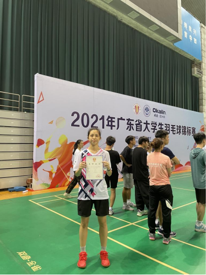 (傅诩恩同学在2021年广东省大学生羽毛球锦标赛中获奖)