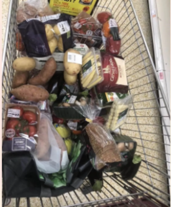 现就读于英国哈德斯菲尔德大学的黄锐康说:“英国疫情爆发初期,许多留学生心里着急且焦虑,但是由于航班取消或者机票价钱过于昂贵,再加上他们还没有准备好上飞机前的物资,比如防护服和护目镜等装备,因此大部分留学生选择暂时留在英国。为了应对疫情,学校也采取了相关措施。比如:所有的线下课程都改成网课。”此外,他本人也有着比较强的自我保护意识。他出门的时候会带上口罩和手套。同时,他选择两周去一趟超市买食材(如下图),且对买回来的食材进行消毒杀菌。
