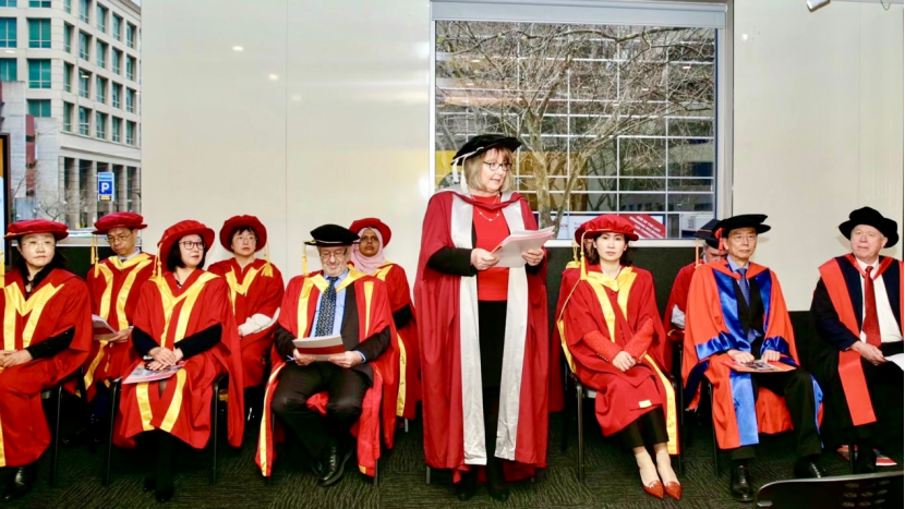 Leon Sterling教授讲话表示,今天是令人激动的一天,他充分肯定了毕业生们取得的成绩,鼓励他们珍视自己所接受的教育。他以人工智能对于现代社会的影响为例,告诫毕业生应该拥抱新科技、使用人工智能,在未来的职业生涯中继续学习和成长。Grace Yan博士宣布获得市场营销学士学位毕业生名单,Jennelle Kyd教授为毕业生颁发学位证书。