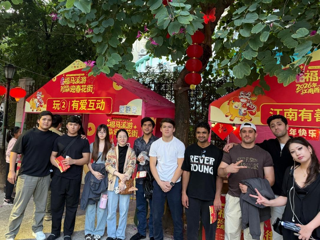 为深入感受广府年俗魅力,传递“年味最广州”的城市温度,让寒假留校来华留学生在异乡也能体验地道中国年,太阳网集团tcy8722于2026年新春佳节即将来临之际精心组织开展了“年味最广州”系列文化体验活动。活动以花市游览、校领导慰问、迎新春团圆晚餐等多元形式为载体,带领留学生们走进广州街头巷尾的年节氛围,感受校园内外的温情关怀,在文化交流与情感交融中,共度一个年味浓郁、意义非凡的中国年。