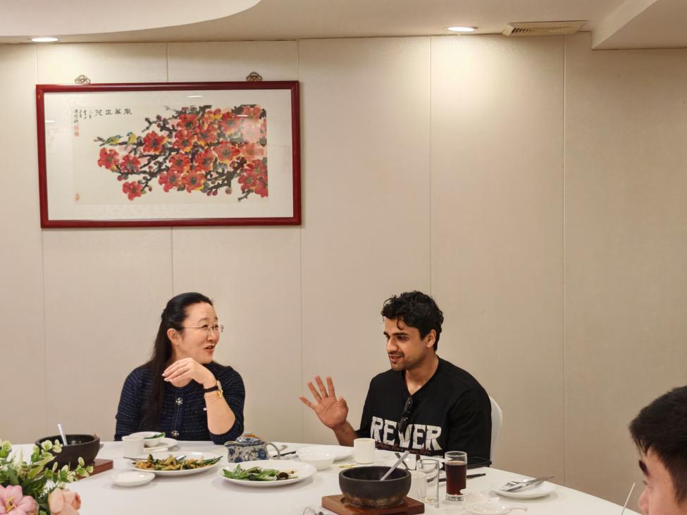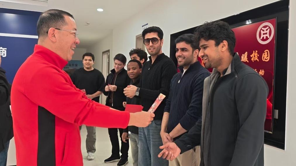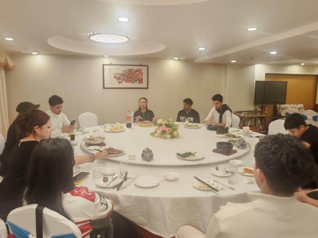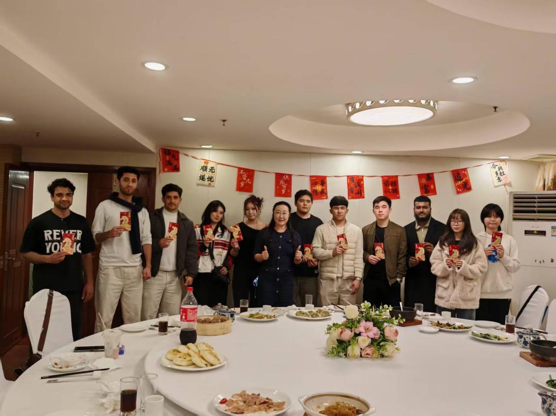 2月12日,太阳网集团tcy8722院长回雁雁、行政秘书邓喜文及办公室助理张锐与9名来华留学生共进迎新春团圆晚餐。此次晚餐特别选在回民饭店,师生围坐一桌,共享广式传统菜肴,在轻松愉快的氛围中畅谈各自家乡的节日习俗。用餐间隙,留学生们也热情分享了各自国家的传统节庆文化,围绕假期体验展开深入交流。随后,回雁雁院长为留学生们派发新春红包,并讲解红包在中国传统文化中象征吉祥如意与美好祝愿的寓意,是春节期间长辈向晚辈表达祝福的重要方式。活动尾声,回院长向留学生们送上真挚的新春祝福,并合影留念。镜头定格下一张张灿烂的笑脸,也定格了校园里中外同心、守望相助的温情瞬间。