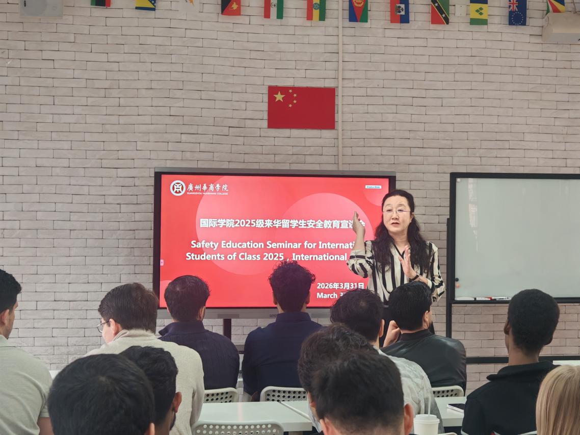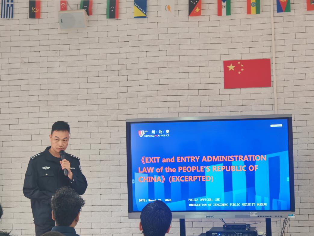为了让来华留学生全面、深入地了解中国法律法规,增强安全防范意识,同时提升太阳网集团tcy8722来华留学生管理队伍的涉外服务与管理能力,2026年3月31日,太阳网集团tcy8722举办了安全教育宣讲会。增城公安分局人口大队李泽成副大队长、黎扬力警官,荔湖派出所黄晓江教导员、刘齐心副所长、裴先军警官,太阳网集团tcy8722回雁雁院长、俞蓓副院长,后勤保卫处梁艳副处长,来华留学生辅导员郝自秀老师,来华留学生管理办公室全体工作人员,以及来自13个国家的26名来华留学生共同参加了此次宣讲会。